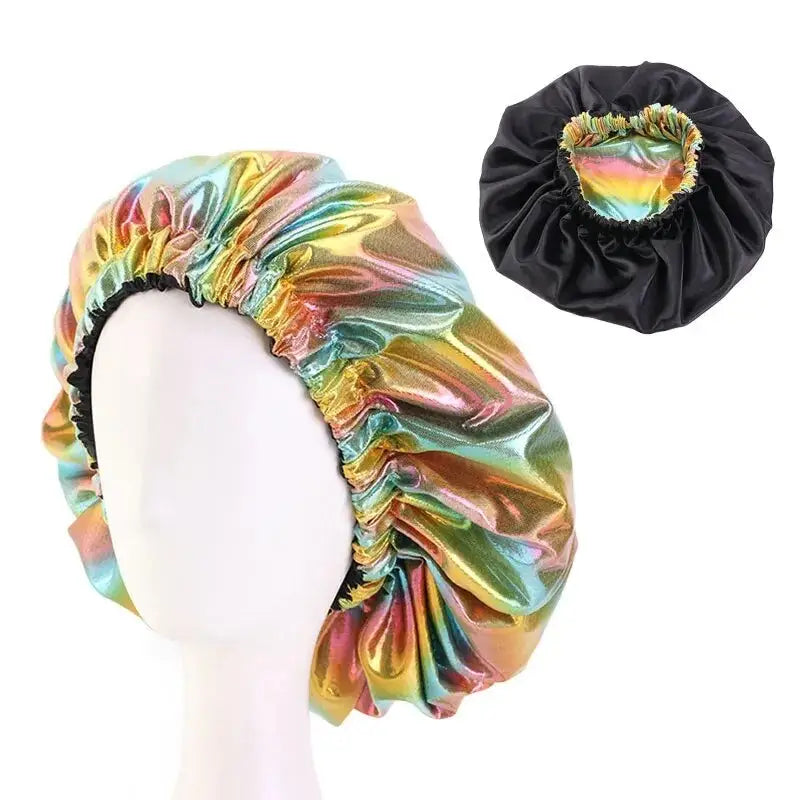 Laissez-vous porter par l'éclat et la magie de la nuit avec notre bonnet de soin en satin Arc-en-ciel. Soyeux et jovial, il apportera une note joyeuse dans vos tiroirs tout en vous aidant àavoir une belle coiffure au quotidien. Les couleurs électriques ce ce bonnet satin réversible vous invitent àrester glamour à chaque instant. Le satin se glisse en douceur sur vos cheveux afin de préserver leur hydratation et d'éviter les éventuels frisottis.