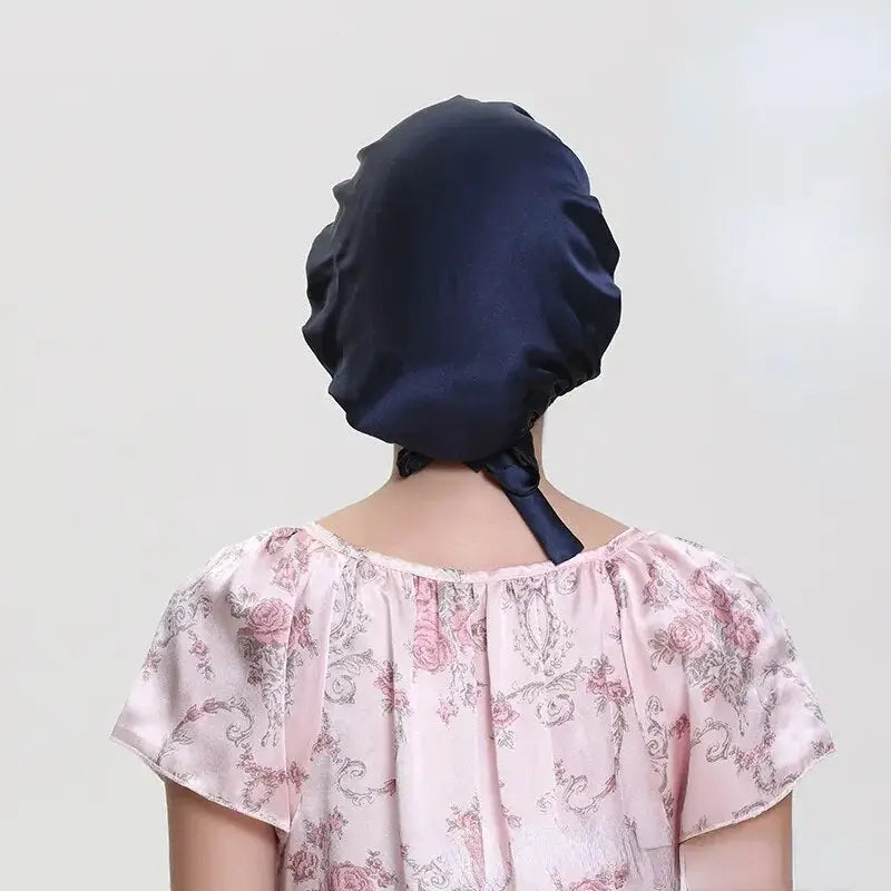 Idéal pour protéger vos cheveux naturels ou extensions jusqu'au petit matin, ce bonnet à nouer 100% en soie de mûrier protège des dommages causés par les frottements contre l'oreiller. D’une douceur inégalée, cet accessoire de soin capillaire réduit efficacement frisottis, cassures et pointes fourchues vous assurant ainsi des cheveux soyeux et naturellement brillants dès le réveil. Ce bonnet de sommeil ajoute en supplément, une touche luxueuse à votre routine de nuit. Léger et respirant, il offre un confort maximal au quotidien !