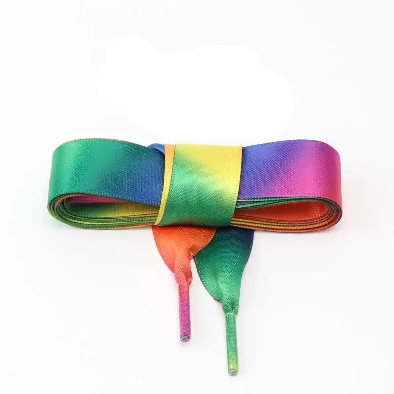 Pour les occasions spéciales comme pour égayer vos tenues quotidiennes, ces  lacets plats en satin arc-en-ciel  twistent votre style avec une  note fraiche et joyeuse ! On adore leurs couleurs vives qui  rayonnent de glamour. Ces jolis rubans de satin vous permettront d’exprimer votre bonne humeur tout en affirmant ce côté cool et classe qu'on adore chez vous. Du chic jusqu’au bout des pieds, on valide !