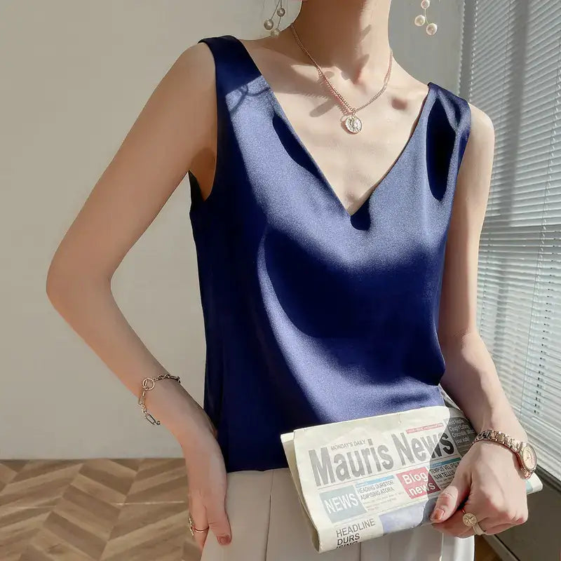 Rehaussez votre style avec notre Débardeur Femme en Satin Soie Unicolore, pensé pour allier élégance, confort et adaptabilité. Ce haut fluide au design sling (bretelles fines) épouse joliment votre silhouette et s'adapte à tous les looks, du décontracté au sophistiqué.