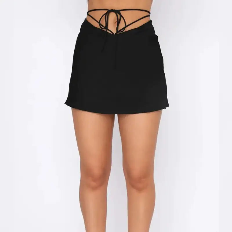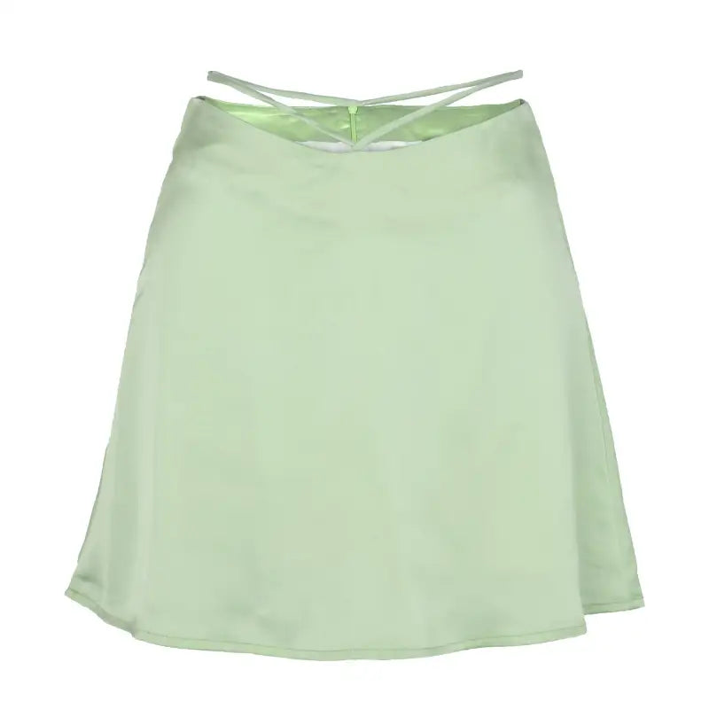 Rehaussez votre garde-robe avec notre Jupe Courte Mi-Corps en Satin Fashion Simple avec Laçage, une pièce tendance qui mêle confort, élégance et originalité.