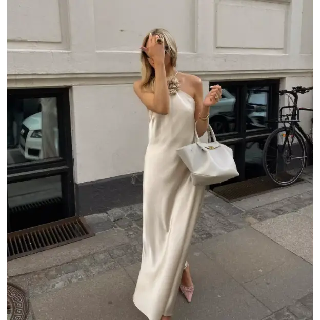 Parfaite pour un mariage, une soirée chic, un dîner ou un gala, la Robe Satin Santorini Champagne s’impose comme un choix incontournable pour celles qui recherchent une allure élégante et moderne.