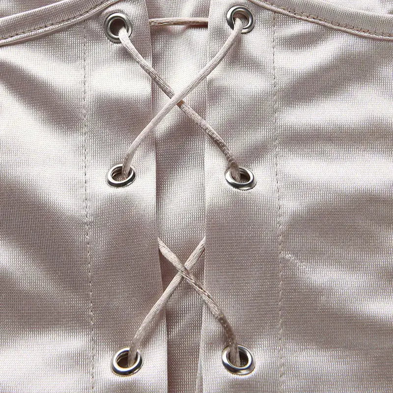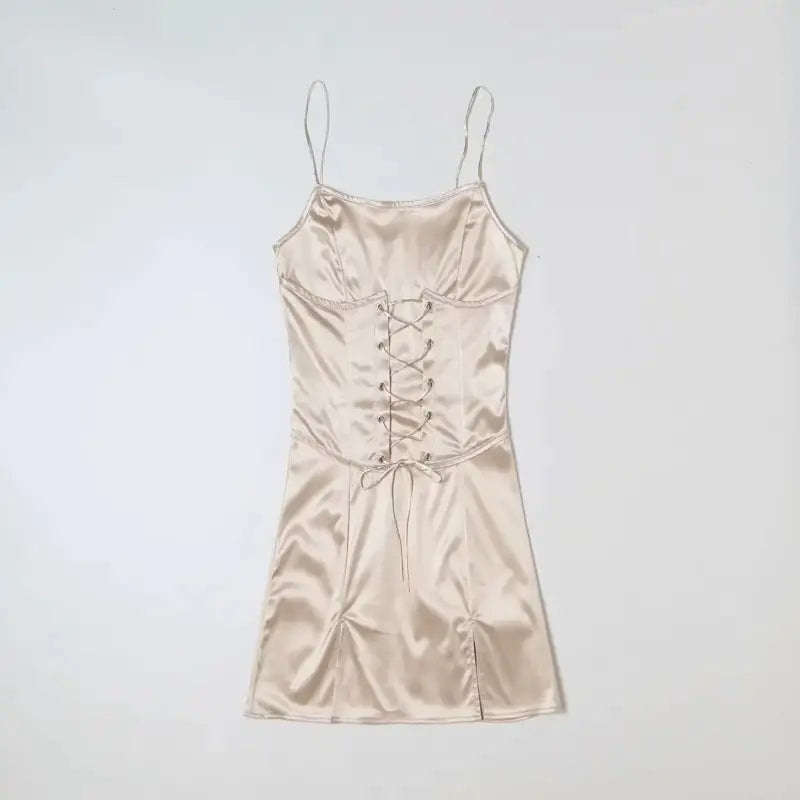 Affichez un style irrésistible avec notre robe satin courte beige à lacets, pensée pour sublimer la silhouette avec audace et élégance. Son tissu satiné ultra doux capte la lumière avec brillance, mettant en valeur chaque courbe avec une touche glamour.