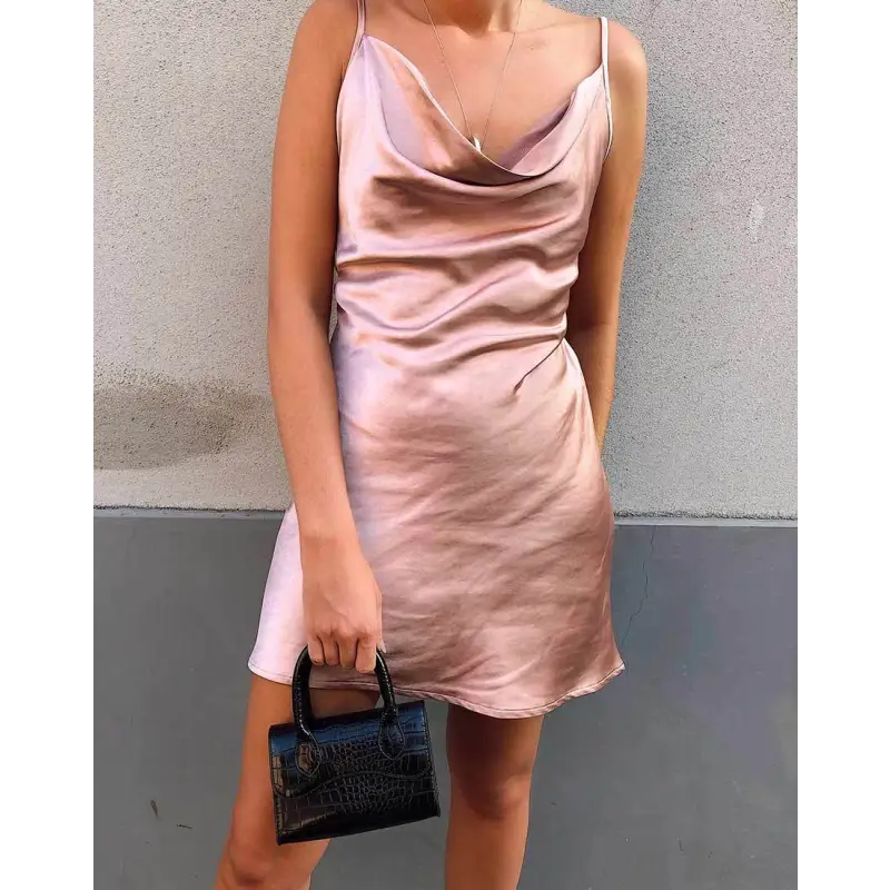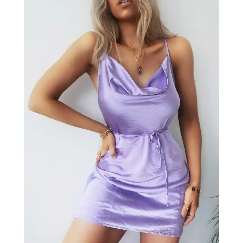 Découvrez notre magnifique robe en satin qui apportera un soupçon de glamour et d'élégance à votre garde-robe. Disponible en 8 couleurs somptueuses, cette robe est proposée dans 4 tailles différentes pour satisfaire toutes les morphologies.