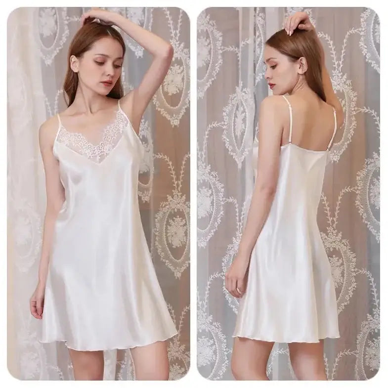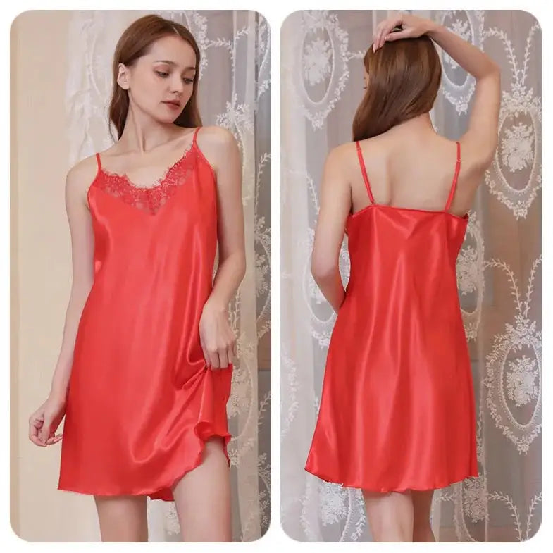 Cette nuisette rend hommage à la féminité à travers la douceur innée du satin et le glamour chic de la dentelle. Elle ajouteraune note délicieusement sensuelle à votre look tout en procurant une tendre sensation à votre peau. Sous toutes ses couleurs à la fois vibrantes et sexy, notre petite robe de nuit dévoilera votre côté séductrice. Elle sublime la poitrine et embellit naturellement la silhouette.
