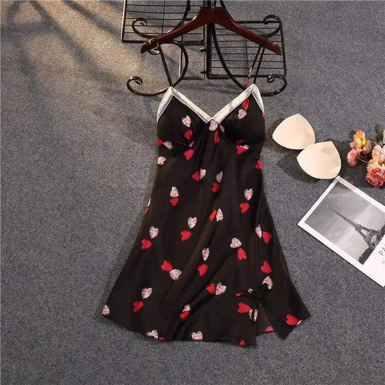 Coup de cœur absolu pour cette adorable nuisette satinée qui semble autoriser toutes les fantaisies. Fendue sur le côté, cette robe de nuit valorisera vos courbes en toute discrétion. Vous allez adorer ce petit côté mignon et sexy qui se reflète à merveille dans une ribambelle de cœurs absolument à croquer. D’une douceur incroyable, elle suggère en complément, un niveau confort amélioré laissant présager une sensation de bien-être optimal.